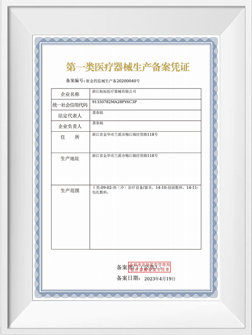 Produktion Registrierungszertifikat für medizinische Geräte der Klasse I.